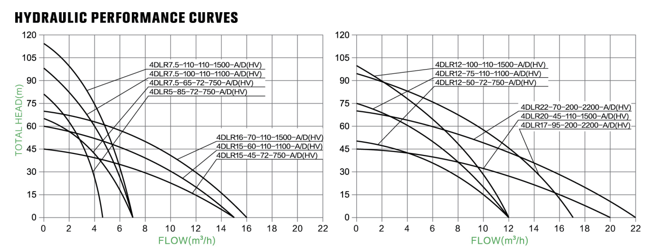 The solar PV system voltage needs to meet the voltage range in the figure below. For example: The 4DLR4.5-85-110-750-A/D model matches the solar panel voltage between 80V~420V.