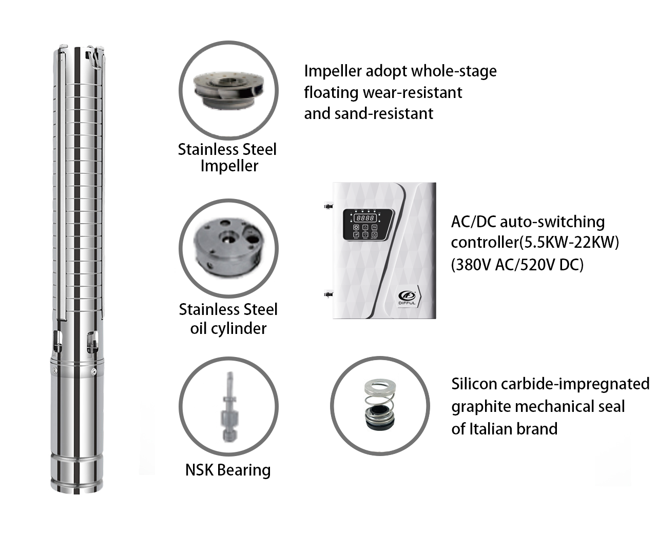 6"AC/DC Brushless Solar Pump with Stainless steel Impeller